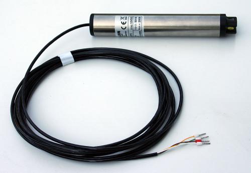 The mechanical design of the probe allows it to be permanently immersed in the medium to be measured (water). The four-core polyurethane interconnecting cable, which serves both to power the probe and to transmit the measured data via the RS485 interface under the FINET protocol, is encapsulated together with the electronics on the probe side in a stainless steel probe housing with a diameter of 28 mm and a length of 180 mm to protect against moisture penetration. The cable length is 5 m as standard and ESV11 sensors can be supplied with a longer cable on request.